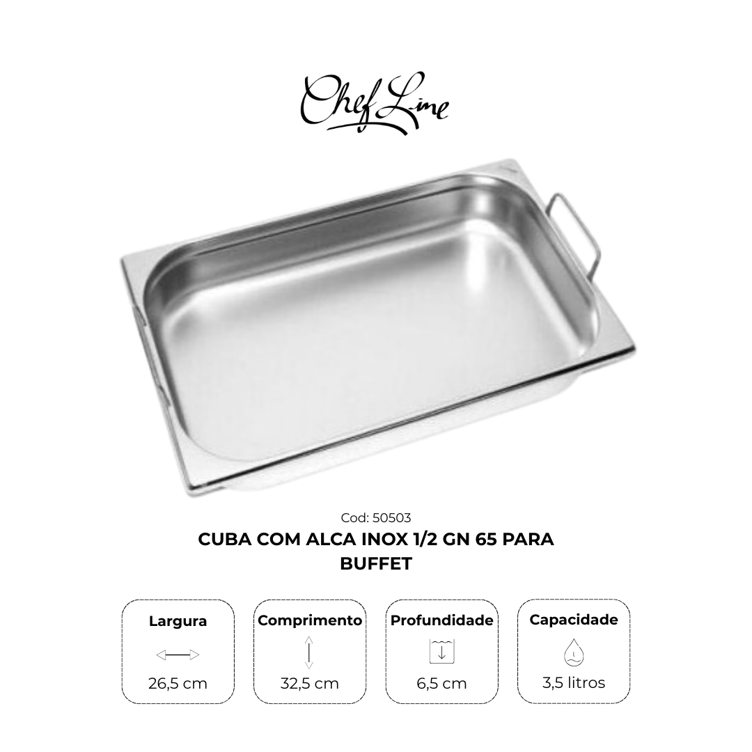 Cuba Com Alca Inox 1/2 Gn 65 para Buffet