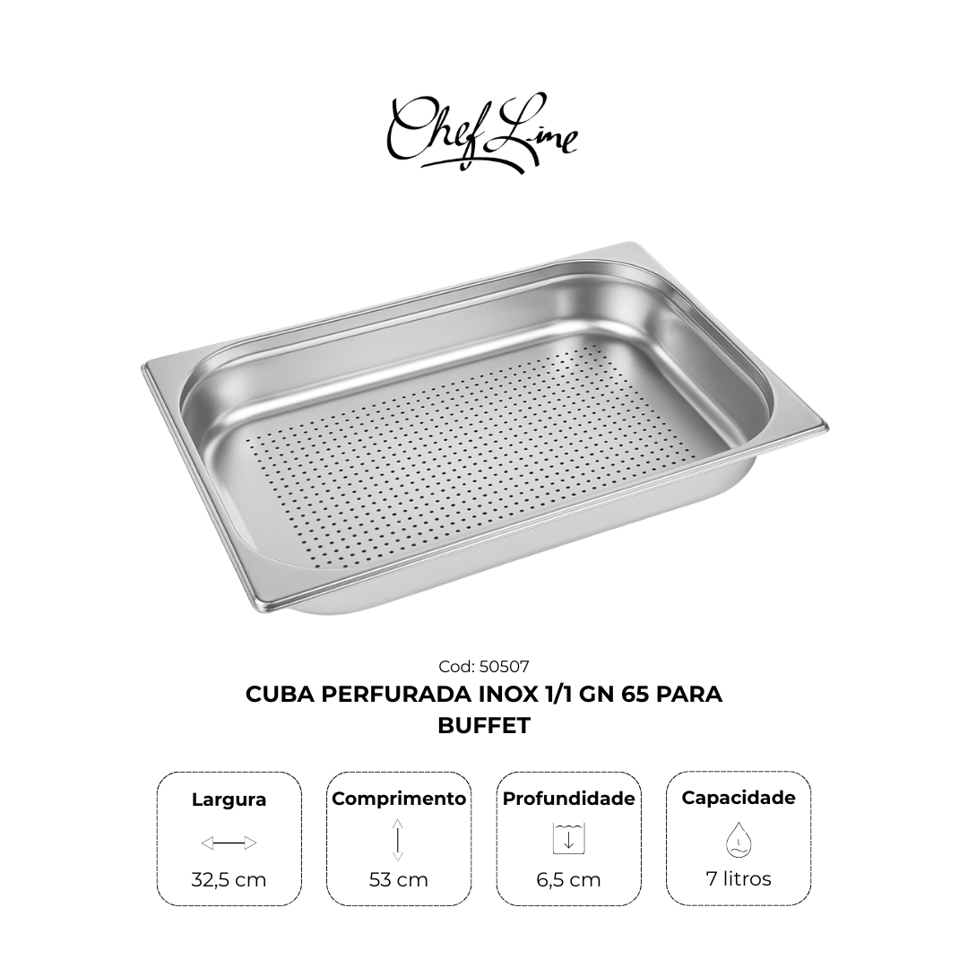 Cuba Perfurada Inox 1/1 Gn 65 para Buffet