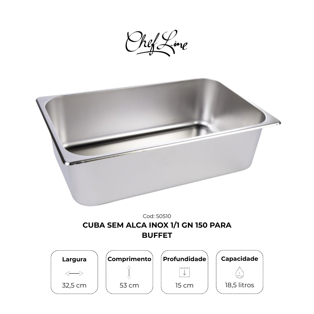 Cuba Sem Alca Inox 1/1 Gn 150 para Buffet