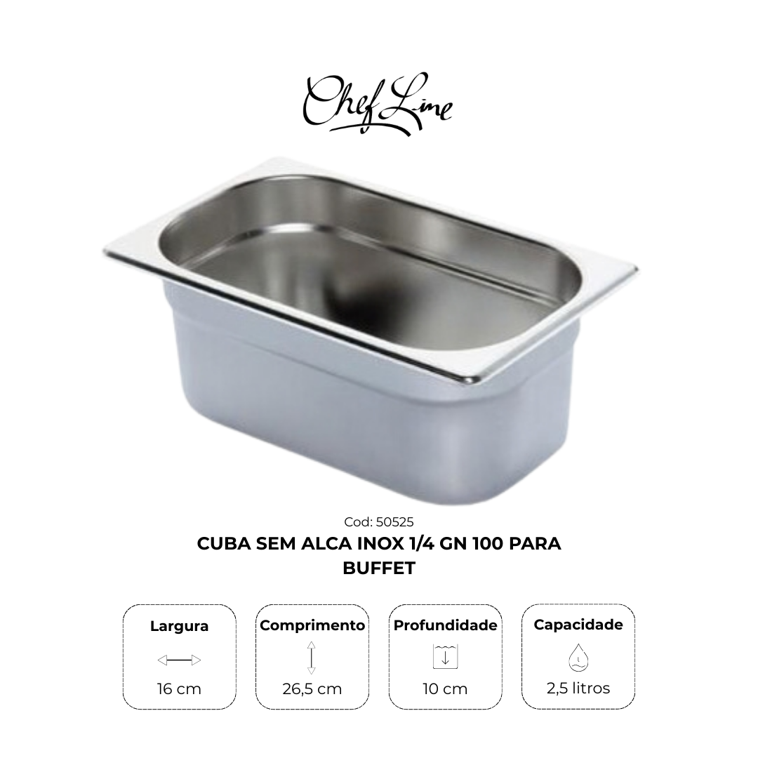 Cuba Sem Alca Inox 1/4 Gn 100 para Buffet
