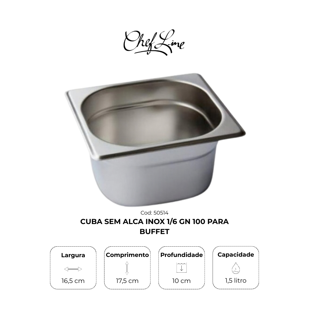 Cuba Sem Alca Inox 1/6 Gn 100 para Buffet