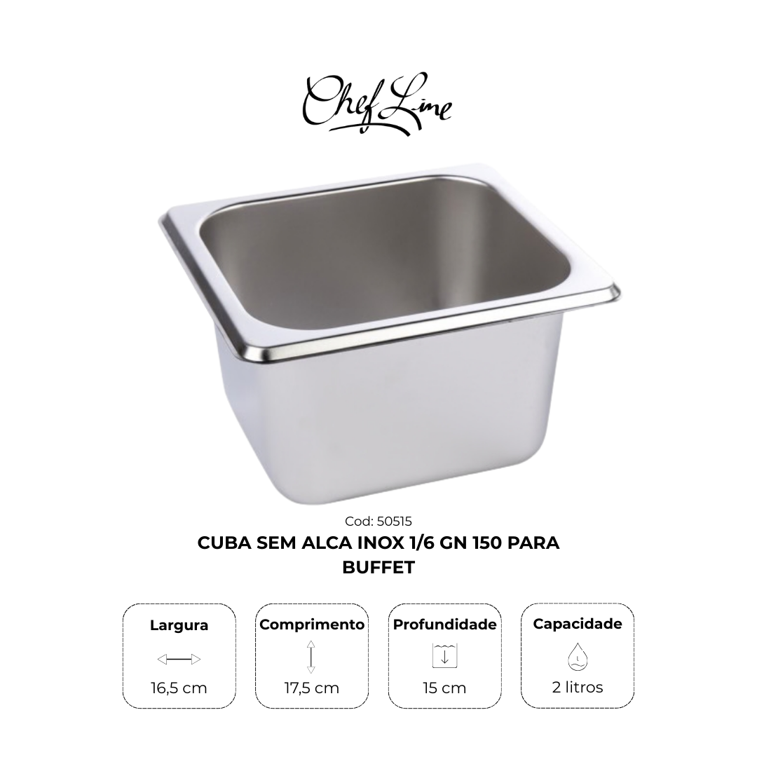 Cuba Sem Alca Inox 1/6 Gn 150 para Buffet