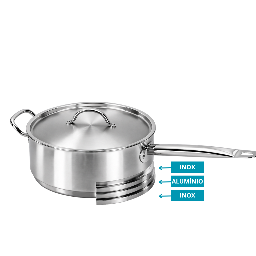 Panela 26 CM 4,5L Com Tampa em Inox e Fundo Triplo