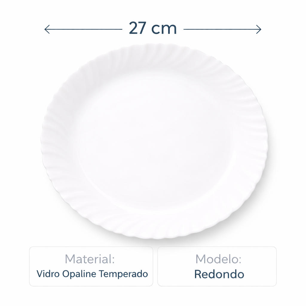 O prato raso pétala em vidro opaline temperado de 27 cm é ideal para servir refeições com elegância e sofisticação. Seu design diferenciado em formato de pétalas valoriza a apresentação dos pratos, sendo uma excelente opção para restaurantes, hotéis, buffets, cozinhas profissionais e revenda em lojas de utilidades domésticas.