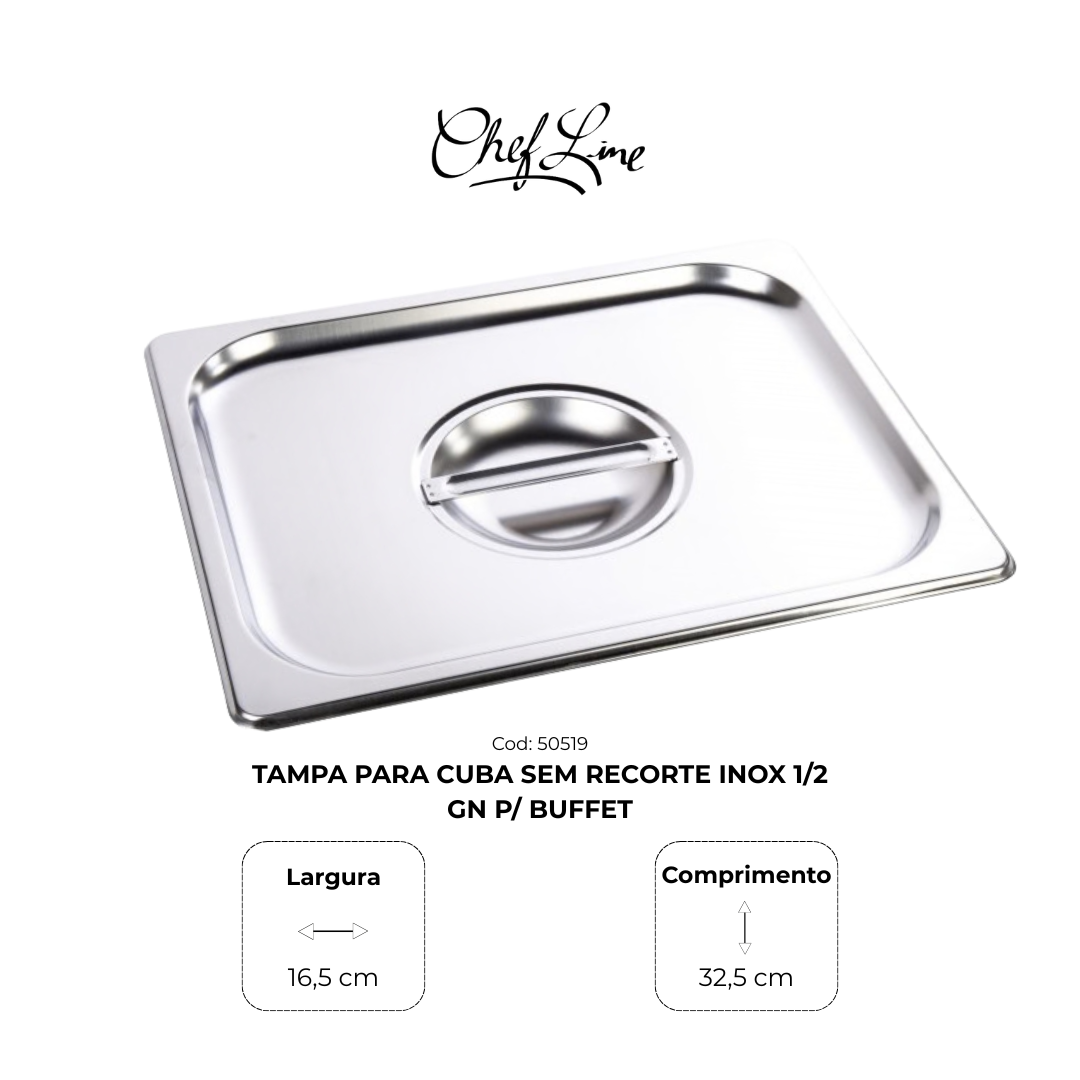 Tampa para Cuba Sem Recorte Inox 1/2 Gn P/ Buffet