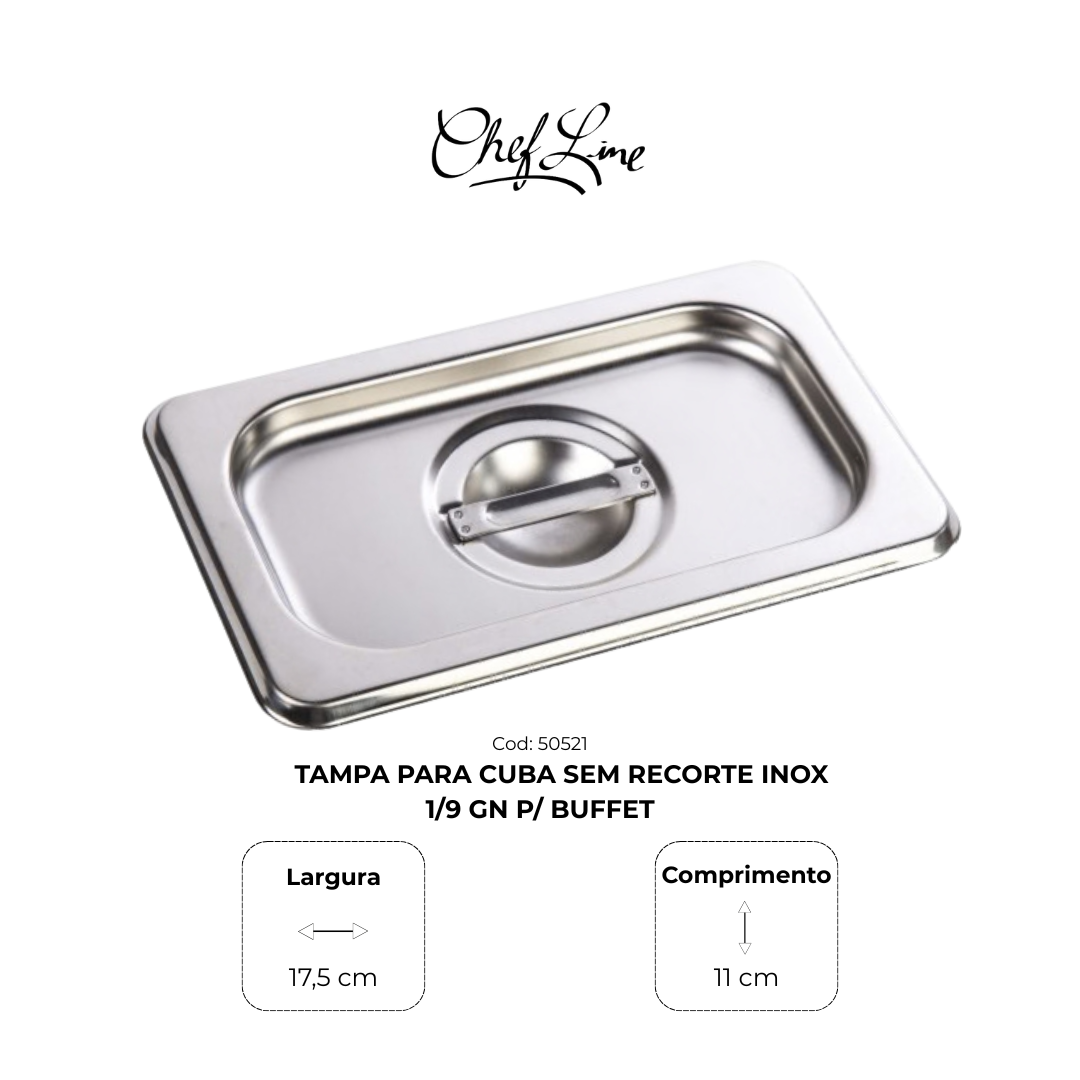 Tampa para Cuba Sem Recorte Inox 1/9 Gn P/ Buffet