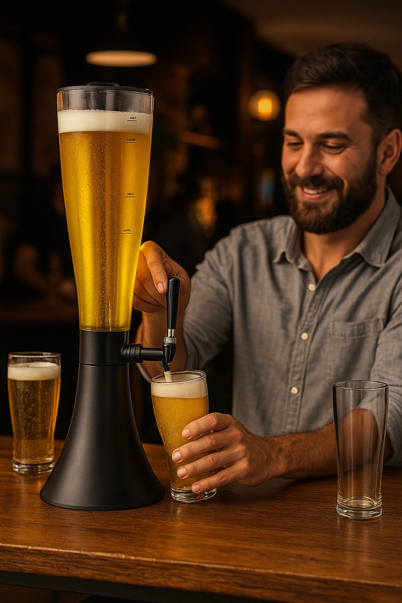Ideal para bares, restaurantes, festas e eventos, a torre de cerveja com capacidade de 4 litros é perfeita para manter a bebida ao alcance dos convidados com muito mais autonomia. Com 68 cm de altura e base pesada, oferece excelente estabilidade durante o uso, mesmo com a torre cheia. Possui design moderno, bico dosador prático e estrutura que facilita o reabastecimento e a limpeza.