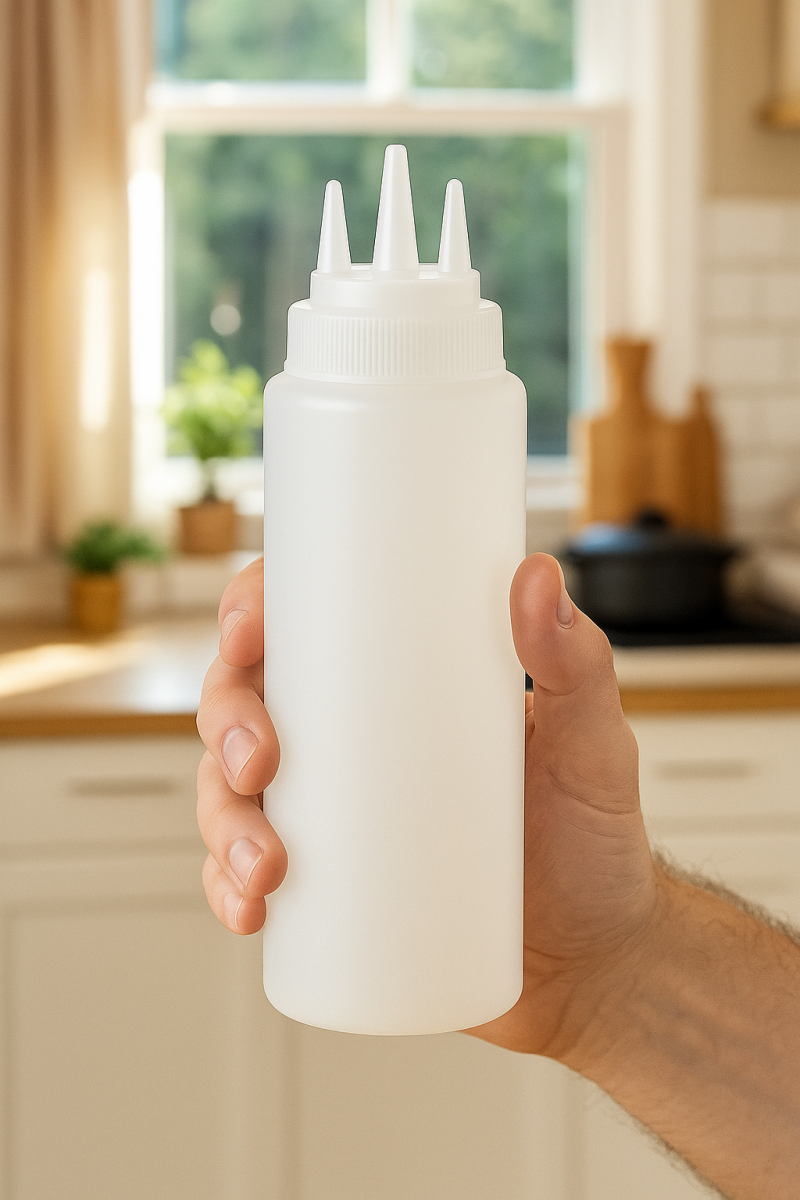 Funcional e prática, a Bisnaga Multiuso com Medidor e Tampa com 3 Bicos – 450ml é ideal para armazenar e aplicar diversos tipos de molhos, e ingredientes de forma controlada e higiênica. Fabricada em plástico resistente e de alta qualidade e marcações de medidor para dosagem precisa.