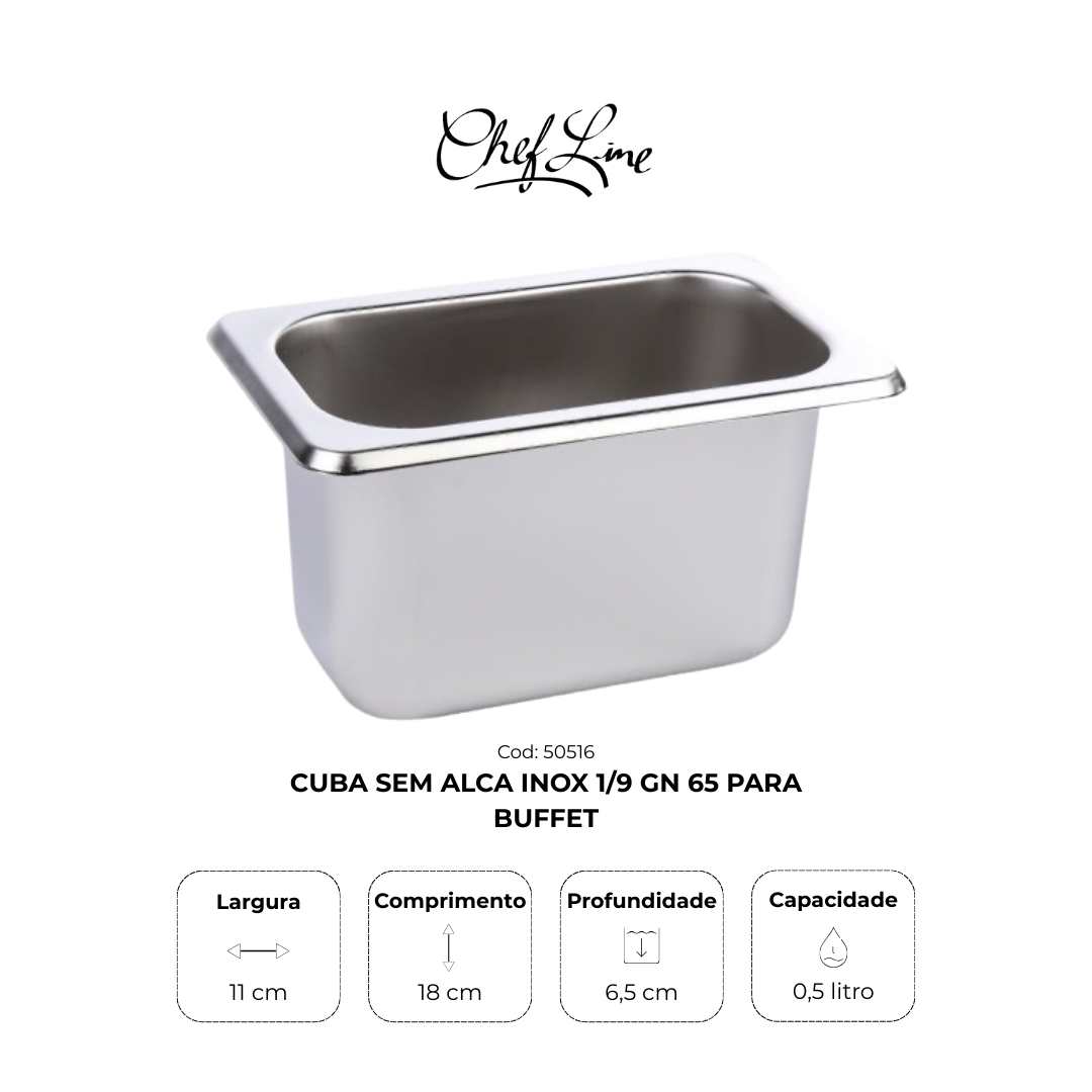 Cuba Sem Alca Inox 1/9 Gn 65 para Buffet